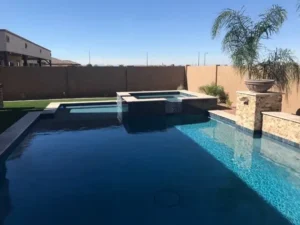 When designing your swimming pool, it’s helpful to see how your design will translate once it’s physically in your backyard. Here we’ll look at a swimming pool and backyard environment design that Trevor Brents did for the Pierce family of Queen Creek, AZ.